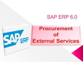 The document discusses the process of procuring external services in SAP. It involves several steps: