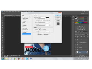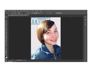 2) Key steps included creating a blank A4 page, adding a masthead with the magazine name and details in blue, importing a photo of a model and flipping it to face the inside of the magazine.
