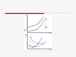 2. Production functions show the relationship between physical inputs and outputs. Total, marginal, and average product are discussed for functions with one variable input like labor.