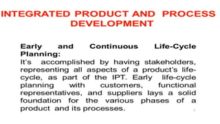 The NPD process involves 8 key stages from idea generation through to product launch. It begins with brainstorming ideas and evaluating their potential. Top ideas are further developed into concepts which are tested through market research. Strategic and financial analysis determines if concepts fit the business. Products are developed, tested with customers and modified based on feedback. They are then commercialized by determining pricing and marketing plans. Finally, a launch plan introduces the product to the market.