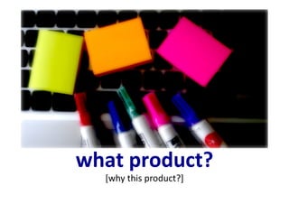 The document discusses key considerations for product development including identifying user needs and problems to solve, developing the product with a focus on user experience, and managing requirements and timelines. It addresses determining what product to create, factors that drive necessity and invention, and developing cool technologies to solve problems. The presentation was given at the Institut Teknologi Bandung on November 26, 2011.