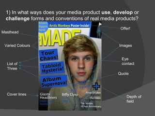Taylor Wilson created a magazine targeting 16-19 year olds interested in indie music. The magazine uses conventions like a masthead, issue date, and varied sections seen in other music magazines. It would be distributed by Worldwide Magazine Distribution Ltd. due to their experience selling similar magazines to the target audience. The content and color scheme aim to attract this audience interested mainly in the indie genre. Through constructing the magazine, Wilson learned photography and editing skills in Photoshop.