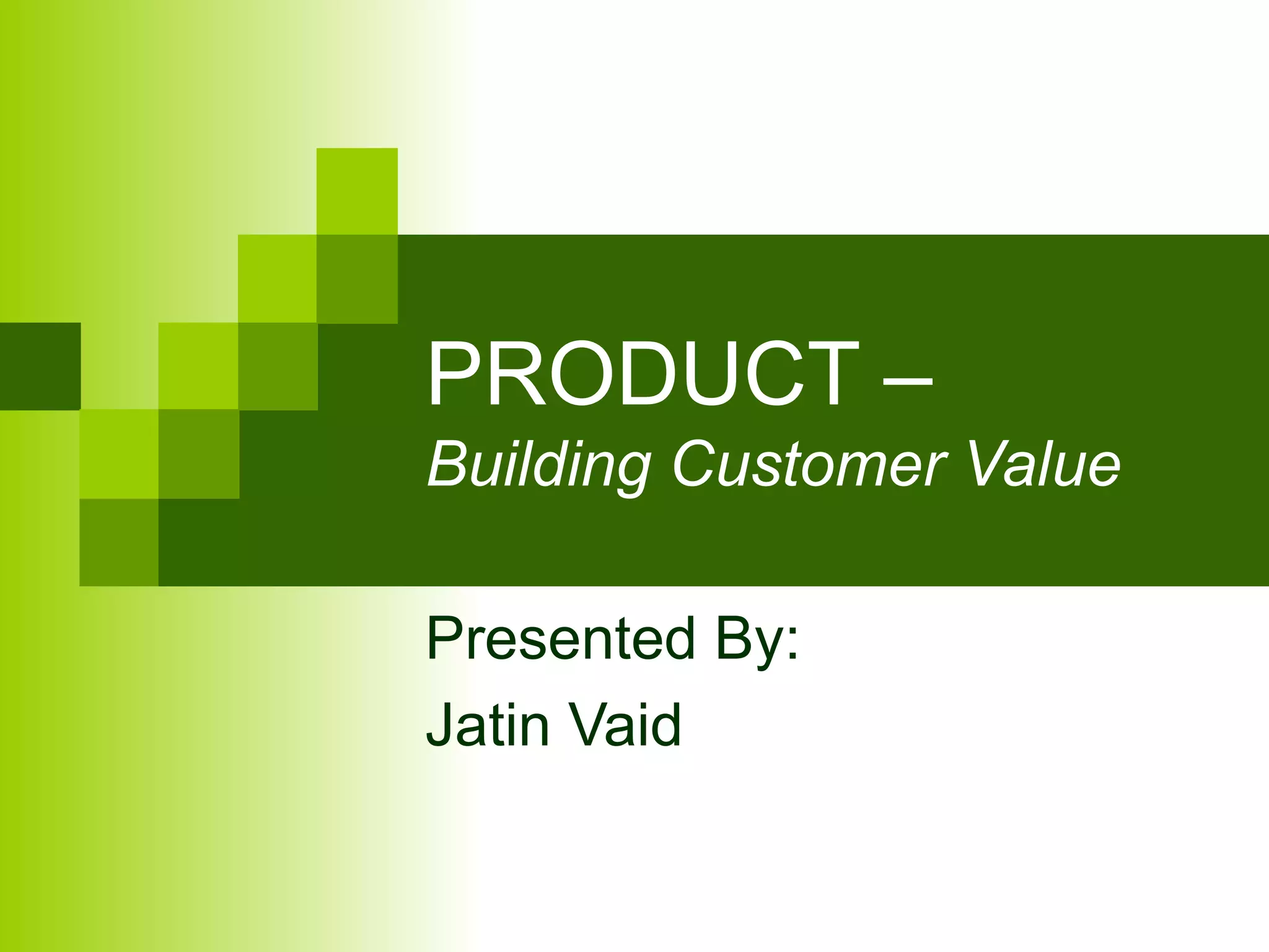 The document discusses products and the product development process. It defines what a product is and describes different levels of products from the core customer value to potential value. It then classifies products into consumer and industrial goods, and provides examples of different types of consumer and industrial products. The document also outlines the new product development process and key decisions involved at the individual product, product line, and product mix levels. Finally, it introduces the concept of product life cycle and different strategies companies employ during the introduction, growth, maturity, and decline stages.