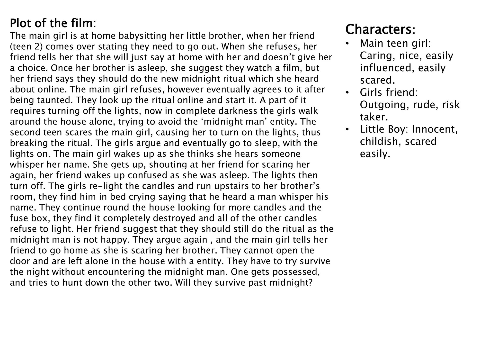 1) The film plot involves two teenage girls who decide to perform an online midnight ritual in a house, which summons an evil entity.
