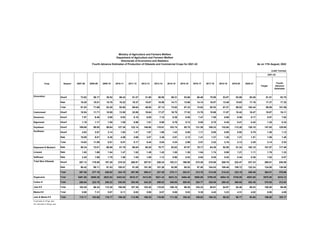 This document presents India's fourth advance estimates of foodgrain production for the 2021-2022 crop year. It provides estimates of production for various kharif and rabi crops from 2007-2008 to 2021-2022. The total estimated foodgrain production for 2021-2022 is 315.72 million tonnes, higher than the previous year's estimate of 307.31 million tonnes. Rice and wheat continue to be the predominant crops in terms of production.