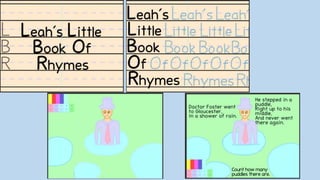The document is a production diary for a children's book project. Over several weeks, the diary details the planning and research process. In week 1, the author struggled with the proposal but hoped to learn more over time. Research in weeks 2-3 taught the author about children's book styles and presentations. In week 4, the author identified potential problems like computer issues and looked at printing options. Week 5 involved further problem-solving. Week 6 was spent planning nursery rhymes and pages. By week 7, planning was largely complete ahead of production starting in week 8. The diary shows the progression from early challenges to being well prepared through thorough research and planning.