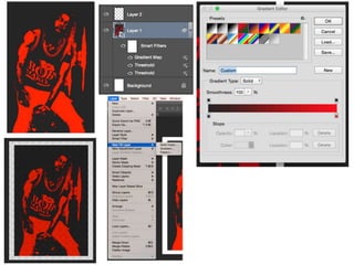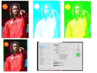 Tom Batty conducted four experiments with different Photoshop techniques to learn skills for his final project magazine cover. His first experiment involved creating a painted text effect by selecting a handwritten font, masking an image into the letter shapes, and using the liquefy tool. His second experiment used blending options to colorize duplicate images for a 3D effect. The third experiment applied thresholding, gradient mapping, and patterns to an image. His fourth and most difficult experiment created an 80s-style chrome title using multiple layers, gradients, glows, and edge effects. He found strengths in learning new techniques but also weaknesses in not perfectly replicating tutorial results. Elements he may include in his final product are painted text, layered images,