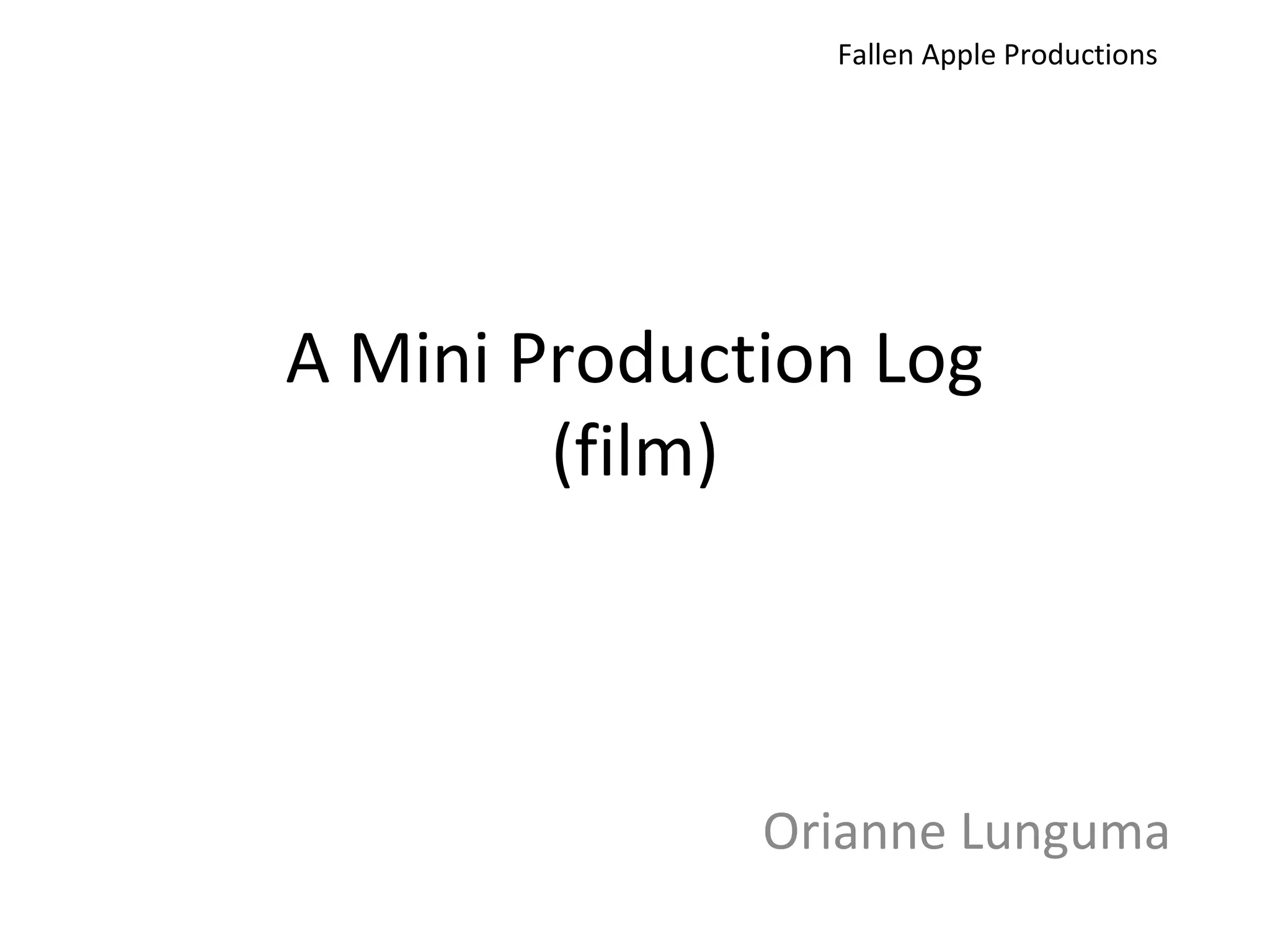 The document is a production log for a student film titled "Fallen Apple Productions" that follows the character Harry through an exposition and rising climax. It describes filming various scenes of Harry asleep in bed, getting ready for school, interacting with a tramp, and taking a shortcut through the woods where he is attacked. The log documents adjusting camera angles, positioning actors, and filming dialogue to set up the story and rising conflict.