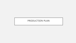 This document provides a production plan for a short film. It includes an equipment guide listing the camera, tripod, SD cards, lights, computer, headphones, and software that will be used. Adobe Premiere Pro and Photoshop will be used for editing. Three actors who are around 18 will be cast from the filmmaker's friends. The film has no budget as the equipment and locations are provided by the school. Copyright free music from bensound.com will be used. The footage will be copyrighted and permission slips obtained for minor actors. The film is aimed at a 15 rating and will be released for free on Short of the Week.
