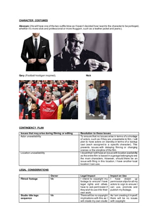 The proposed release date for the film is late 2020, either October or November, to coincide with other crime/drama films and avoid clashing with local events. Following feedback, the filmmaker may need to clarify the storyboards and develop character profiles, such as changing a character from Mancunian to cockney. The budget is restricted to around £40 by using existing props and asking actors to provide costumes. Issues that could arise include actor unavailability, which will be addressed by having backup actors, and location unavailability, for which an alternative is available. Ethical considerations include adhering to BBFC guidelines for a 15 certificate and content that does not intentionally offend. The film will be submitted to online film sites