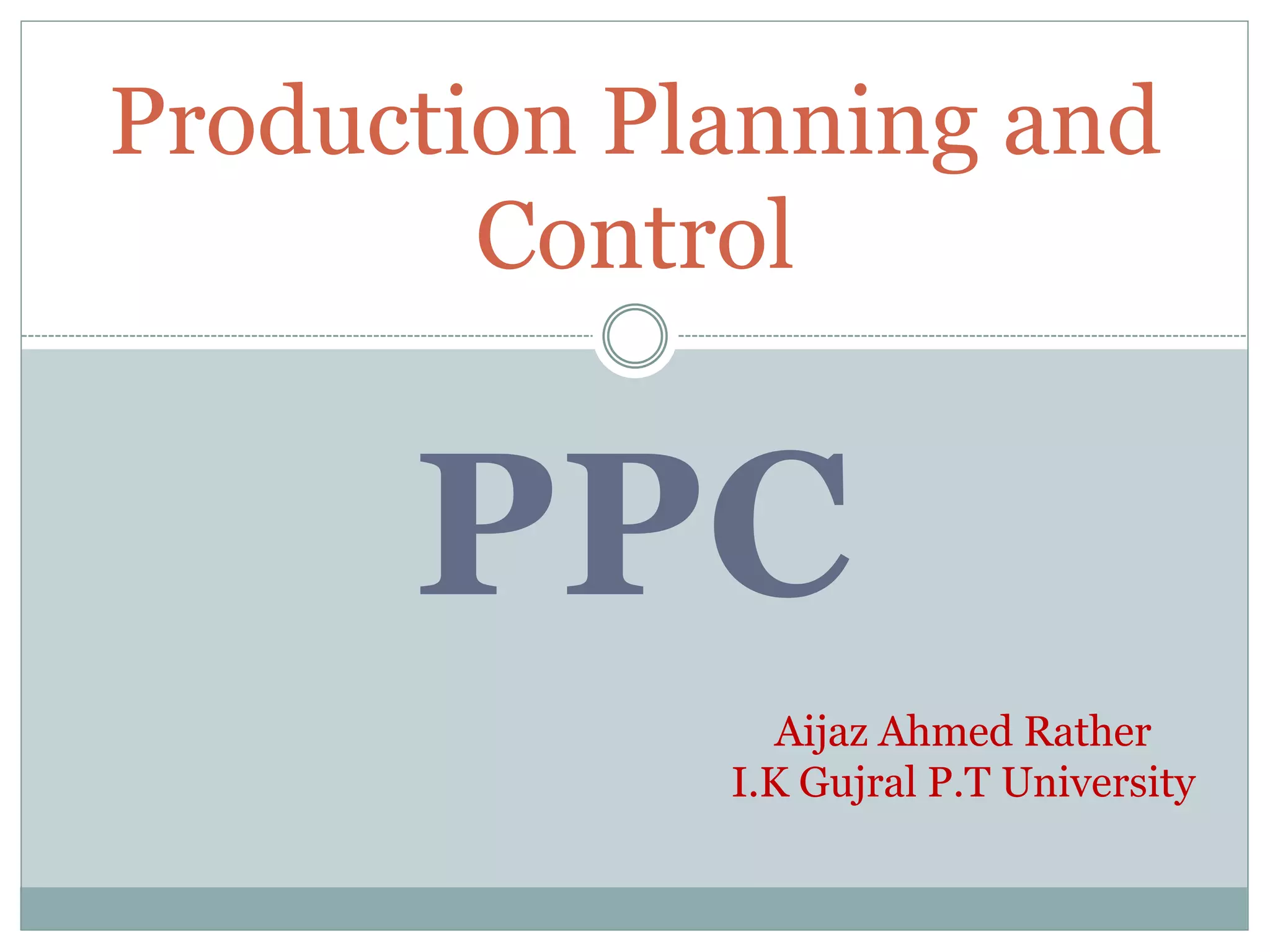 This document discusses production planning and control (PPC). PPC involves directing and coordinating a firm's resources to meet production goals efficiently. It includes production planning, which determines operations and resource needs, and production control, which implements and regulates operations. The objectives of PPC are continuous production flow, optimized inventory, and increased productivity. PPC considers factors like process interdependence and system type. It involves activities like programming, routing, scheduling, loading, ordering, dispatching, follow-up, and inventory control to implement production plans.
