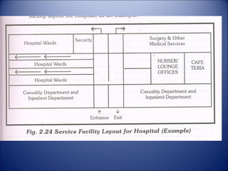 2) Key considerations for plant location include availability of raw materials, labor, markets, transportation and utilities at minimum cost. Location analysis involves evaluating domestic and international sites based on these factors.