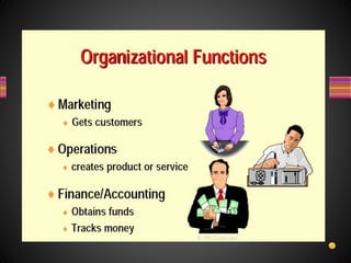 คือผล กาไรที่ทาให้องค์การอยู่รอดและเจริญเติบโตได้ในระยะ ยาว เมื่อมีการแยกพันธะกิจออกเป็นวัตถุประสงค์ของแต่ ละหน้าที่หลักจะพบว่า ฝ่ายการตลาด : วัตถุประสงค์หลัก คือ การ ขยายตัวของส่วนแบ่งตลาด (Market Share) และความ พึงพอใจของลูกค้า (Customer Satisfaction) ฝ่ายการเงิน : วัตถุประสงค์หลักคือ ความสามารถ ในการทากาไร (Profitability) และการรักษาสภาพ คล่องของธุรกิจ (Liquidity) ฝ่ายการผลิต : วัตถุประสงค์หลัก คือ คุณภาพ (Quality) และผลิตภาพ (Productivity)แต่แม้คุณภาพ