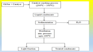 There are four main methods to produce biodiesel from vegetable oils and animal fats: direct use and blending, transesterification, pyrolysis, and microemulsions. Transesterification is the most common process, which uses a catalyst like sodium hydroxide to react triglycerides with alcohol, producing biodiesel and glycerin. Pyrolysis involves thermal cracking of oils at 250-350°C to reduce viscosity. Microemulsions create a stable mixture of oil, water, and surfactant to improve properties. Biodiesel has benefits over petroleum diesel like being renewable, having lower emissions, and similar fuel characteristics.