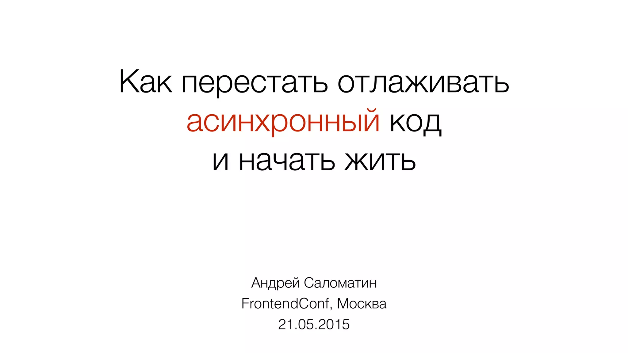 Документ содержит обсуждение асинхронного программирования на JavaScript, включая сложности с управлением асинхронными функциями и различными подходами, такими как продолжительная передача (CPS), промисы и корутины. Приводятся примеры кода и советы по улучшению работы с асинхронными операциями, а также обсуждаются новые возможности, доступные в ES6 и ES7. Основная цель - помочь разработчикам перестать отлаживать асинхронный код и начать более эффективно им управлять.