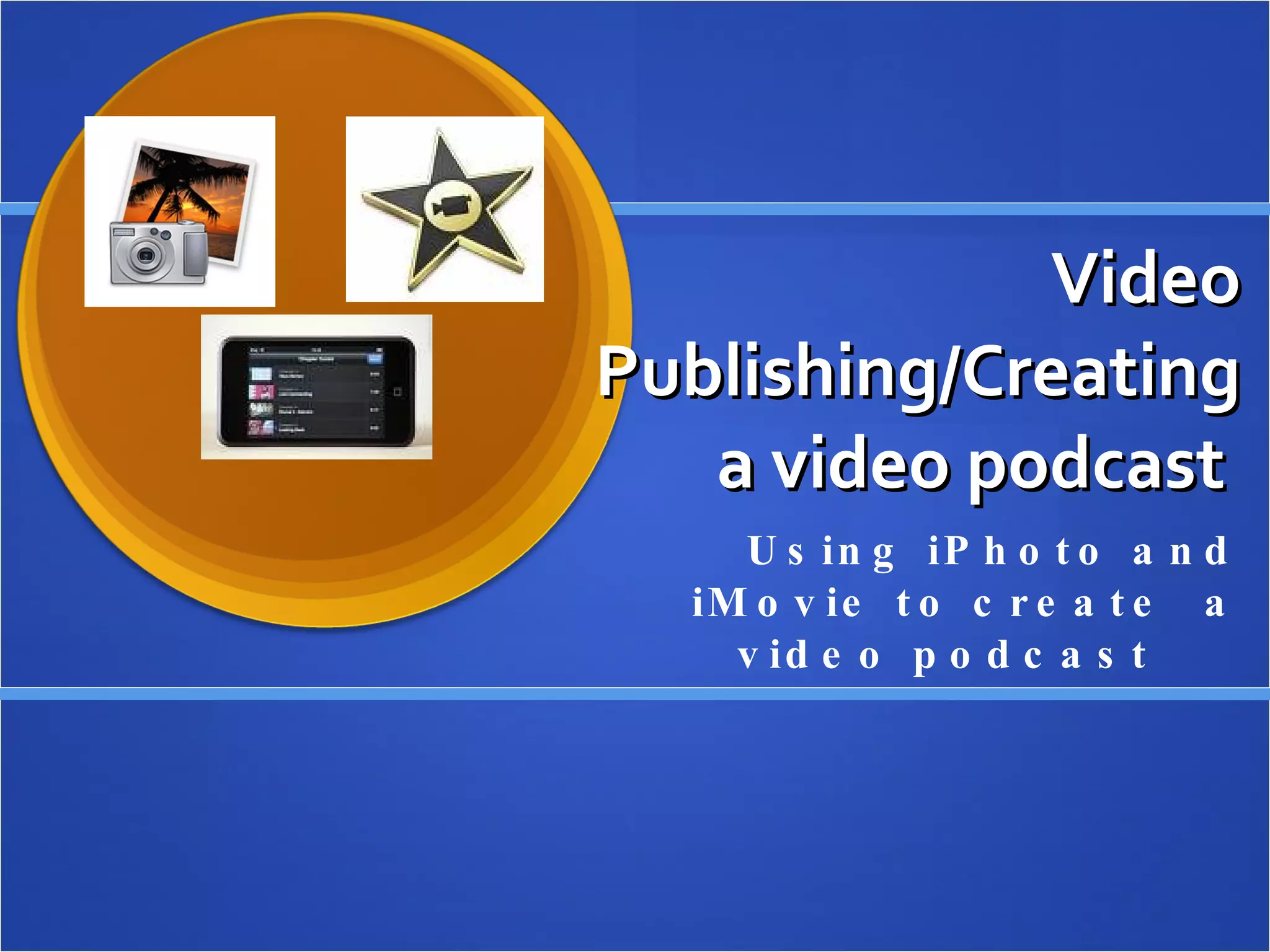 This document provides instructions for creating a video podcast using iPhoto and iMovie on Mac. It describes organizing photos in iPhoto, adding photos and video clips to an iMovie project, editing the timeline and adding voiceovers. The final steps involve exporting the video as a podcast to share on services like iTunes or YouTube. Some example classroom assignments using video podcasts are also listed, such as having students create podcasts to recap lessons, report news, illustrate vocabulary words, document tessellations in their school, or debate issues.