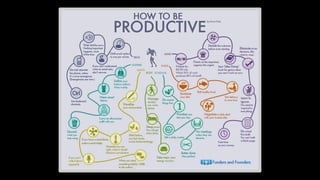This document provides productivity hacks and discusses 5 facts about productivity. Fact #1 states that willpower is a muscle that needs to be exercised. Fact #2 says that multitasking is difficult for humans. Fact #3 notes that human memory is limited. Fact #4 acknowledges that humans have physical needs. The document concludes by advising the reader to be happy.