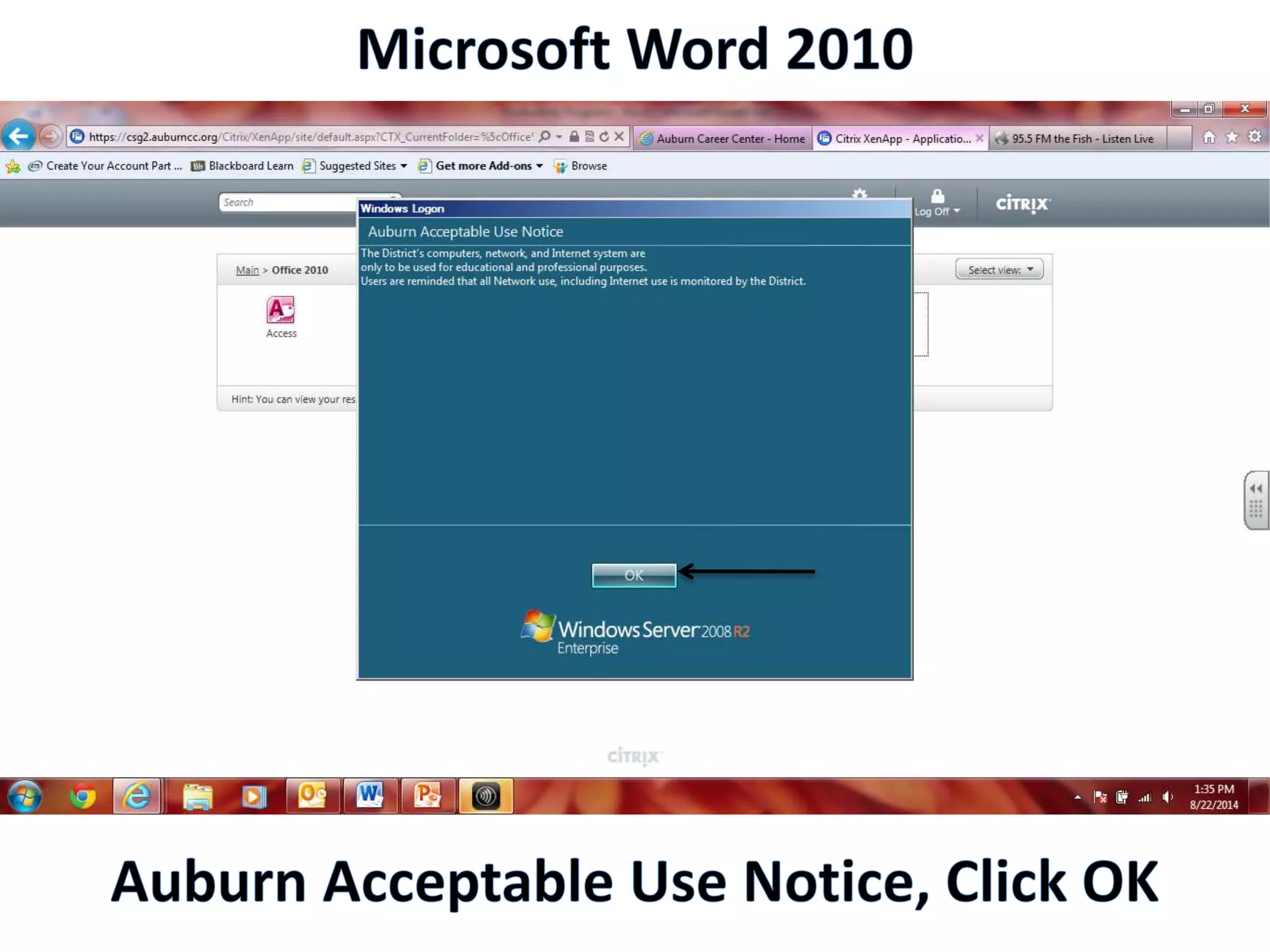 This document lists common productivity programs and their uses. Microsoft Word is used for text documents, Excel for spreadsheets and calculations, PowerPoint for presentations, and Access for organizing data. It also describes the basic interface elements common to Microsoft Office programs, including the title bar, ribbon, tabs, file button, rulers, insertion point, status bar, and zoom slider.