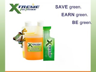 This document provides information about Xtreme Fuel Treatment (XFT), a fuel additive. It discusses XFT's history and patented technology, how it works to improve fuel efficiency and engine performance, typical results customers see like increased fuel economy and horsepower, and user testimonials reporting savings on fuel and maintenance costs.