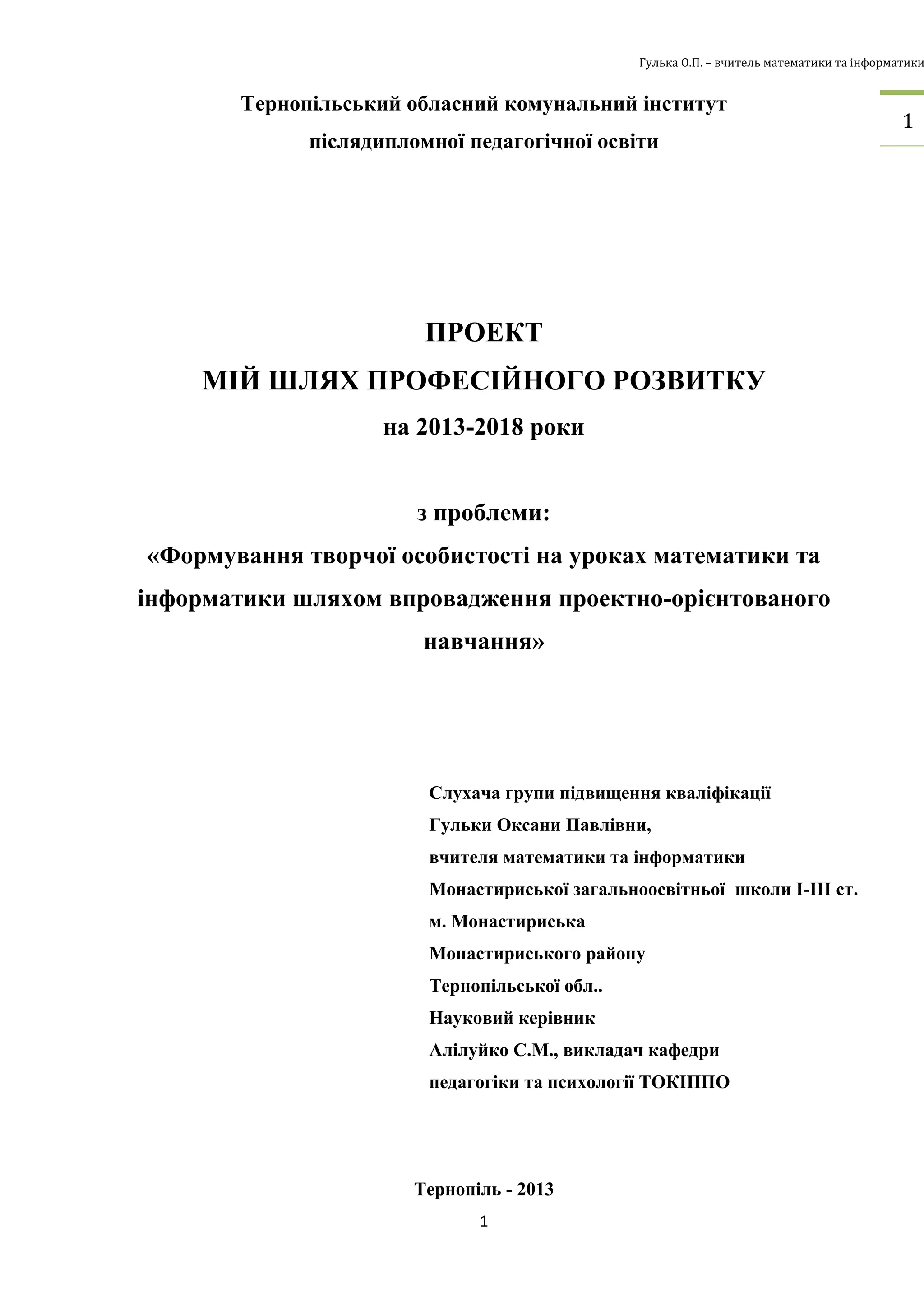 1. Назва проекту. Мій шлях професійного розвитку з проблеми «Формування