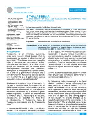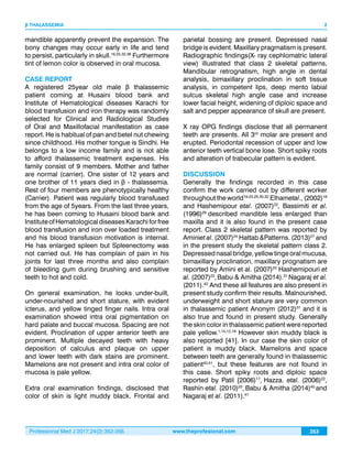 هذا التقرير يشير إلى حالة مريض بتلاسيميا بيتا يبلغ من العمر 25 عامًا من كراتشي، باكستان، ويستعرض تأثير المرض على الفم والوجه. تشدد النتائج على أهمية بدء نقل الدم في وقت مبكر والتحكم في التحميل الزائد للحديد لتقليل شدة الأعراض الفموية والوجهية، مما قد يزيد من احتمالية حياة المريض. كما يقدم التقرير صورة شاملة للتشوهات الفموية والعظام المرتبطة بحالة المريض.