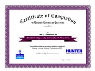 The professional development program offers six online courses targeting teachers and advanced students, featuring contributions from qualified experts. The courses include various resources and activities to prepare participants for examination success, with options to earn a Cambridge TKT or a TEFL certificate from Hunter College. Enrollment information can be obtained through their website or contact details provided.