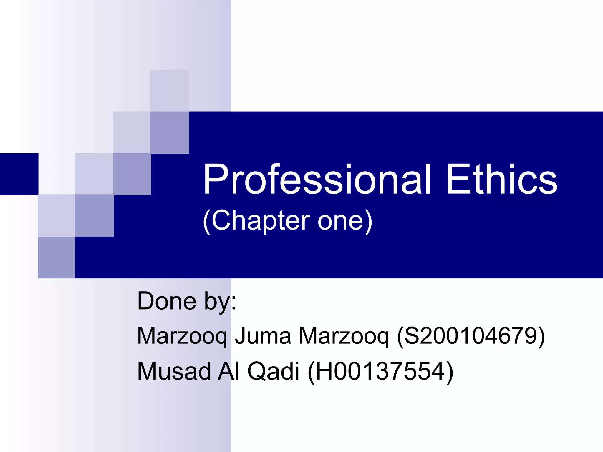 This document discusses the importance of professional ethics, particularly for engineering. It addresses three accounts of what constitutes a profession: sociological, social practice, and Socratic. Engineering can be considered a true profession under the Socratic account, as engineers have extensive training, serve the public good, and are obligated to protect health and safety. However, engineers' status is questionable under other accounts due to lack of complete control over their work and limited autonomy. The document also notes that ethics are crucial for professionalism to maintain public trust and prevent exploitation. Professional ethics provide standards to guide conduct beyond what is legally required.