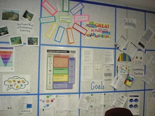 The document discusses the evolution of professional learning teams (PLTs) at Lochearn school over three years from an "add-on" to a "way of being". It began with one hour per week focused on questions from Dufour but grew to include deeper conversations around best practices. Administration took on a coaching role to focus discussions on improving student learning. PLT meetings now align with school and grade goals and include discussion of student achievement data and differentiation strategies. Teachers comment that the collaborative time allows them to enhance their teaching practices.