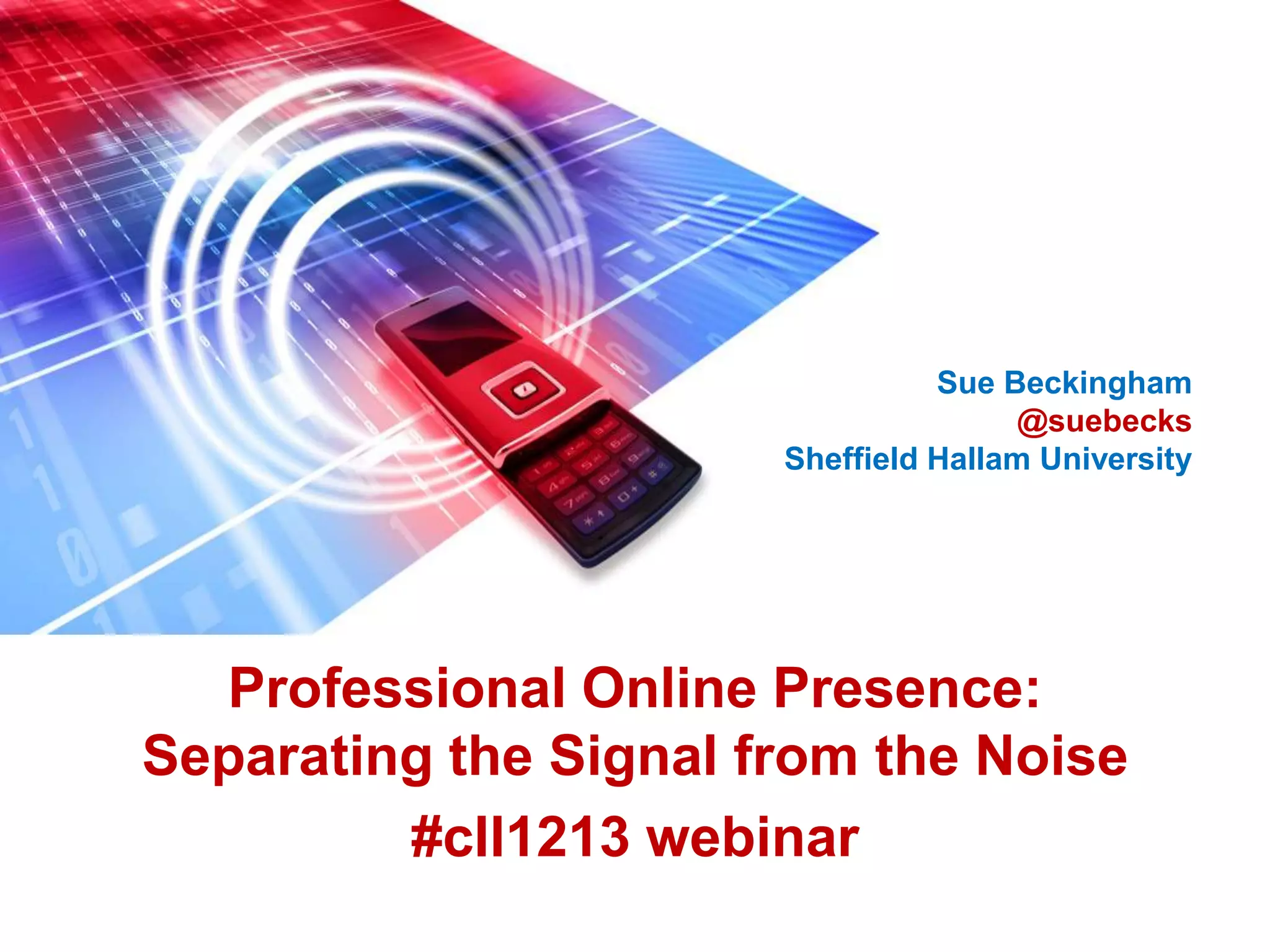 The webinar by Sue Beckingham discusses the importance of developing a professional online presence and leveraging social media to create meaningful connections and networks in academia. It explores how individuals can filter information, manage their digital identity, and identify opportunities for collaboration and communication in an age of information overload. By fostering an active and well-developed online presence, educators can enhance their visibility and impact in their professional fields.