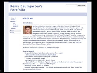 This document discusses the components that make up a professional persona, which is an online presence that potential employers can view. It identifies the key elements as: 1) a professional portfolio website, 2) an online engineering blog, 3) participation in open source projects, 4) involvement in professional social networks, and 5) engagement with technical societies and activities. The goal is to help students establish an attractive online presence that showcases their skills and accomplishments to future employers.
