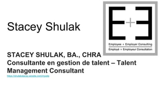 Stacey Shulak has over 10 years of experience in human resources and talent management, having worked for companies such as Volt, Behaviour Interactive, and Felix & Paul Studios. She holds a Bachelor of Arts degree and is a certified human resources professional who now works as an independent HR consultant. Her expertise includes recruitment strategies, performance management, employee training, and helping international companies establish themselves in Montreal.