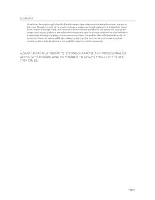 Ellie Kuykendall is a high school student from Dripping Springs, Texas with a 4.0 GPA. She has experience leading children's programs at church and is involved in her school's award-winning drill team. Ellie has also participated in leadership programs to develop her skills in leading others with purpose, confidence and integrity. Her experience in dance, babysitting, and as an older sister have taught her compassion and patience.
