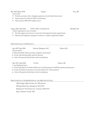 Brittney S. Major is seeking an MBA in marketing. She has over 10 years of experience in executive assistance, public relations, marketing, and real estate. Her resume highlights experience as an executive assistant for a real estate agency, producing newsletters and maintaining websites and databases. She also has experience in retail management and has worked on public relations projects.