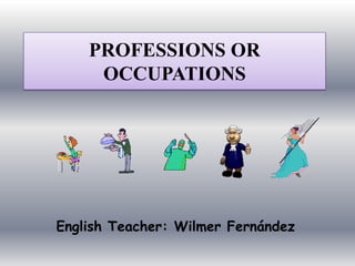 This document discusses common questions used to identify a person's profession or occupation. Some examples of professions mentioned include teacher, doctor, journalist, computer programmer, nurse, salesperson, lawyer, singer, engineer, reporter, secretary, waiter, model, and pilot. It also provides examples of questions to determine where someone works, such as "Where do you work?" or "Where does [name] work?". The locations provided include office, television, hospital, and airport.