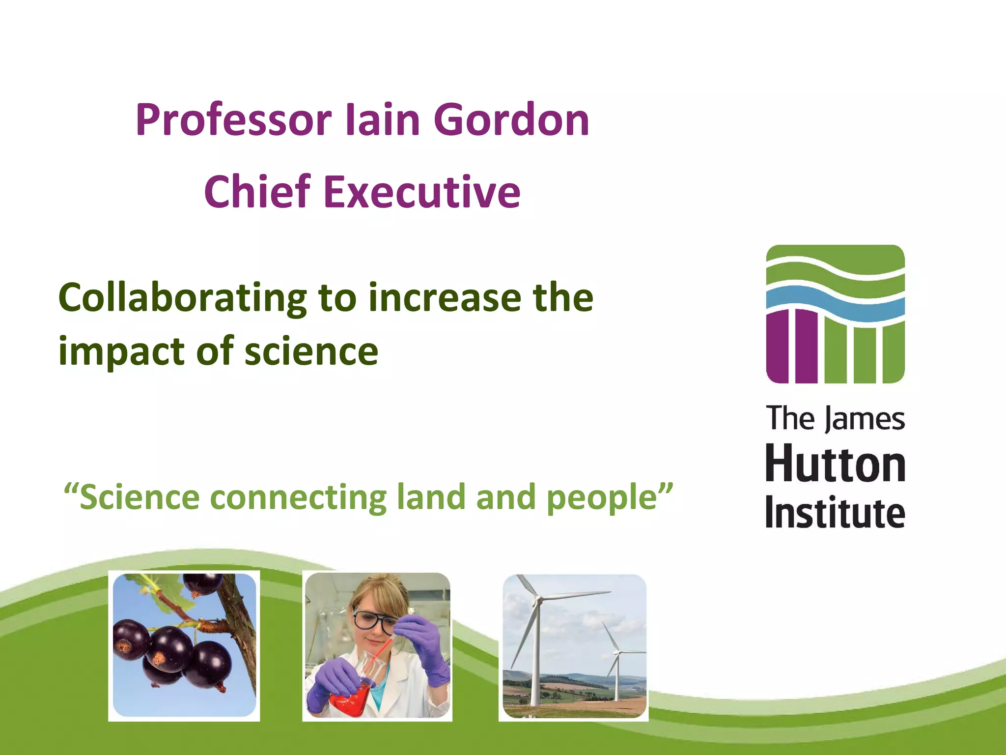 The document provides an overview of collaboration at the James Hutton Institute. It discusses the benefits of collaboration, including drawing on a wider pool of skills and knowledge to address complex issues. It also mentions transferring knowledge and skills, extending research networks, and wider dissemination of outcomes. The document provides examples of recent collaborations across the research sector and acknowledges those involved in collaboration efforts.