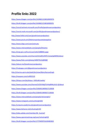 The document contains a list of over 200 profile links from various social media sites and online platforms related to individuals and companies involved in transportation, moving, packing and storage services. The links reference profiles on sites like YouTube, Flickr, Twitter, GitHub and more. Many of the links seem to promote the same businesses and individuals.