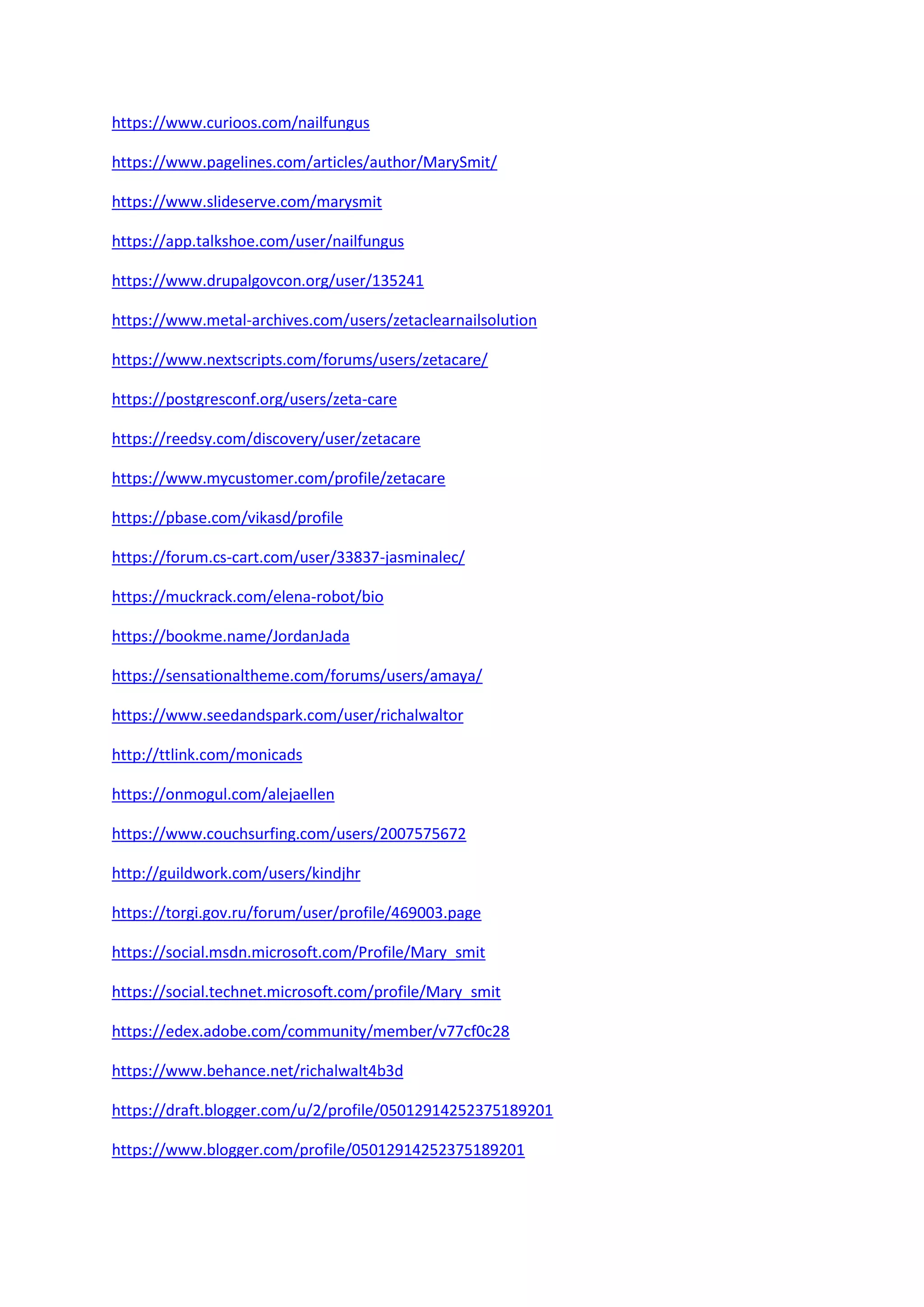 https://www.curioos.com/nailfungus https://www.pagelines.com/articles/author/MarySmit/ https://www.slideserve.com/marysmit https://app.talkshoe.com/user/nailfungus https://www.drupalgovcon.org/user/135241 https://www.metal-archives.com/users/zetaclearnailsolution https://www.nextscripts.com/forums/users/zetacare/ https://postgresconf.org/users/zeta-care https://reedsy.com/discovery/user/zetacare https://www.mycustomer.com/profile/zetacare https://pbase.com/vikasd/profile https://forum.cs-cart.com/user/33837-jasminalec/ https://muckrack.com/elena-robot/bio https://bookme.name/JordanJada https://sensationaltheme.com/forums/users/amaya/ https://www.seedandspark.com/user/richalwaltor http://ttlink.com/monicads https://onmogul.com/alejaellen https://www.couchsurfing.com/users/2007575672 http://guildwork.com/users/kindjhr https://torgi.gov.ru/forum/user/profile/469003.page https://social.msdn.microsoft.com/Profile/Mary_smit https://social.technet.microsoft.com/profile/Mary_smit https://edex.adobe.com/community/member/v77cf0c28 https://www.behance.net/richalwalt4b3d https://draft.blogger.com/u/2/profile/05012914252375189201 https://www.blogger.com/profile/05012914252375189201