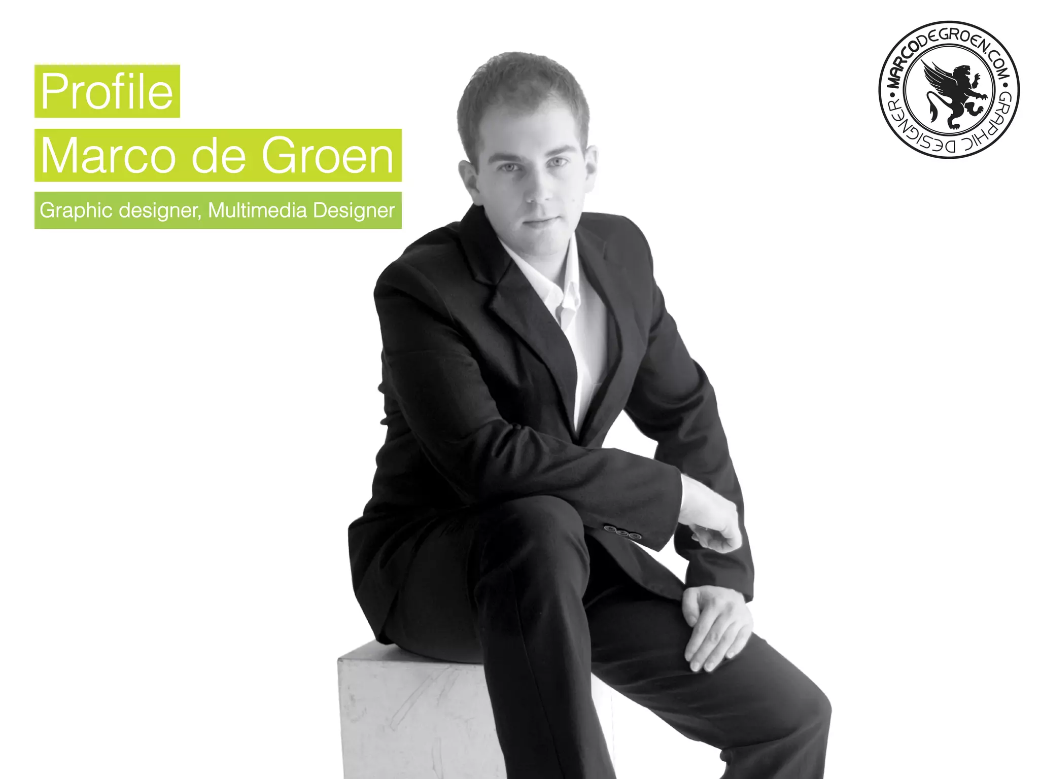 This document provides a profile and resume for Marco de Groen, a graphic designer and multimedia designer with 5 years of experience. It outlines his educational background and awards, including a diploma in multimedia design and two golden pauw awards. It also lists his areas of expertise including graphic design, web design, branding, and social media. Samples of his work are provided for a variety of clients and projects across different mediums.
