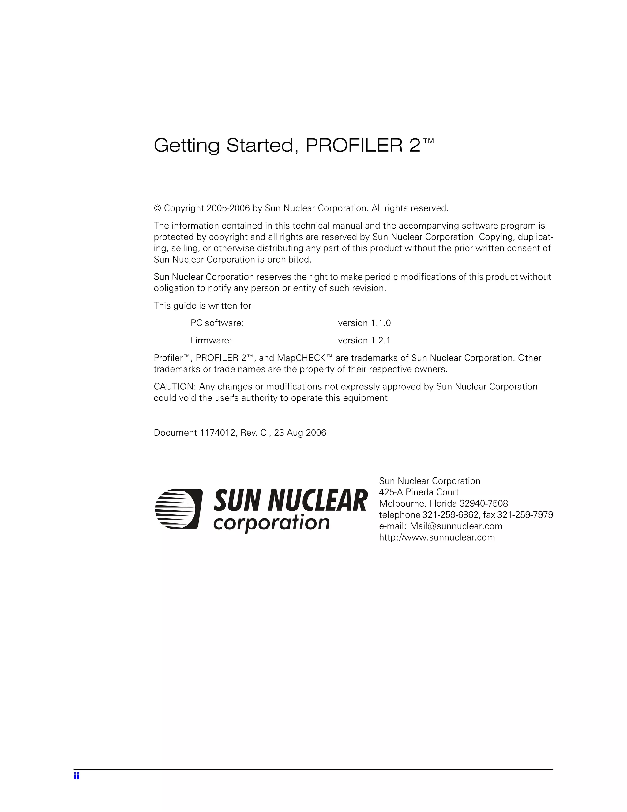 This document provides instructions for setting up the PROFILER 2 system, which includes a detector unit, cables, power/data interface, and software. It describes connecting the hardware components, installing the software, performing initial calibration of the detector array and dose calibration, and taking basic radiation measurements. The document also provides specifications for the PROFILER 2 detector array and operating instructions for the graphical user interface.