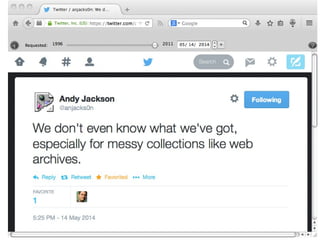 A Possible SerializationA Possible Serialization](https://image.slidesharecdn.com/iipc-2014-nelson-profiling-140521151040-phpapp01/85/Profiling-Web-Archives-39-320.jpg)