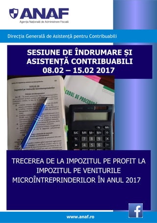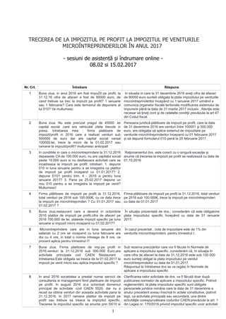 Documentul oferă îndrumări pentru contribuabili privind trecerea de la impozitul pe profit la impozitul pe veniturile microîntreprinderilor în anul 2017, incluzând termenele de depunere a declarațiilor fiscale și condițiile necesare. De asemenea, se detaliază situații specifice ale firmelor în funcție de cifra de afaceri și capitalul social, precum și obligațiile de raportare aferente. Contribuabilii sunt sfătuiți să comunice modificările organelor fiscale teritoriale până la termenul limită de 31 martie 2017.