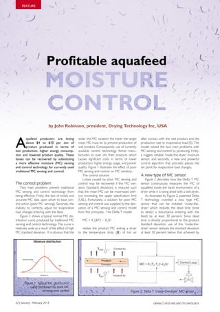 The document discusses advancements in aquafeed moisture control technology aimed at reducing costs and improving product quality in the drying process. It introduces a new 'inside-the-dryer' moisture sensor and control model that effectively minimizes standard deviation in moisture content, leading to significant energy savings and reduced production losses. Additionally, the document highlights the importance of accurate control algorithms for optimizing moisture content against evaporative load changes in aquafeed production.