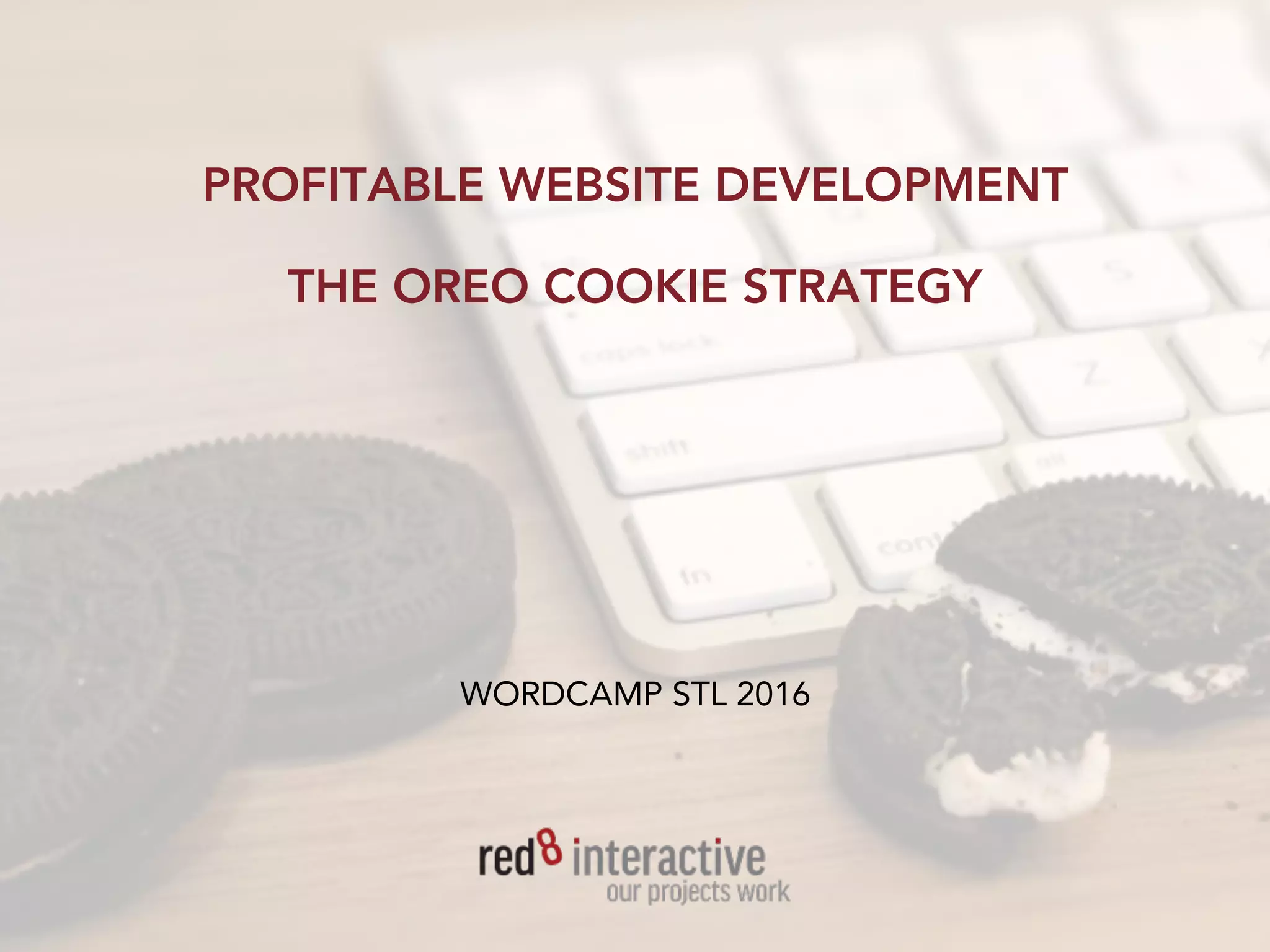 The document outlines key strategies for successful website development, emphasizing the importance of thorough planning and clear communication among stakeholders. It introduces the 'Oreo Cookie Strategy,' which highlights the necessity of solid functional and technical requirements, effective design, and efficient building processes. Additionally, it stresses the importance of charging appropriately for services and managing client expectations to avoid miscommunication and maintain project profitability.
