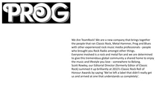 - TeamRock is a new company formed by experienced rock music media professionals who previously worked at publications like Classic Rock, Metal Hammer, and Prog magazine.