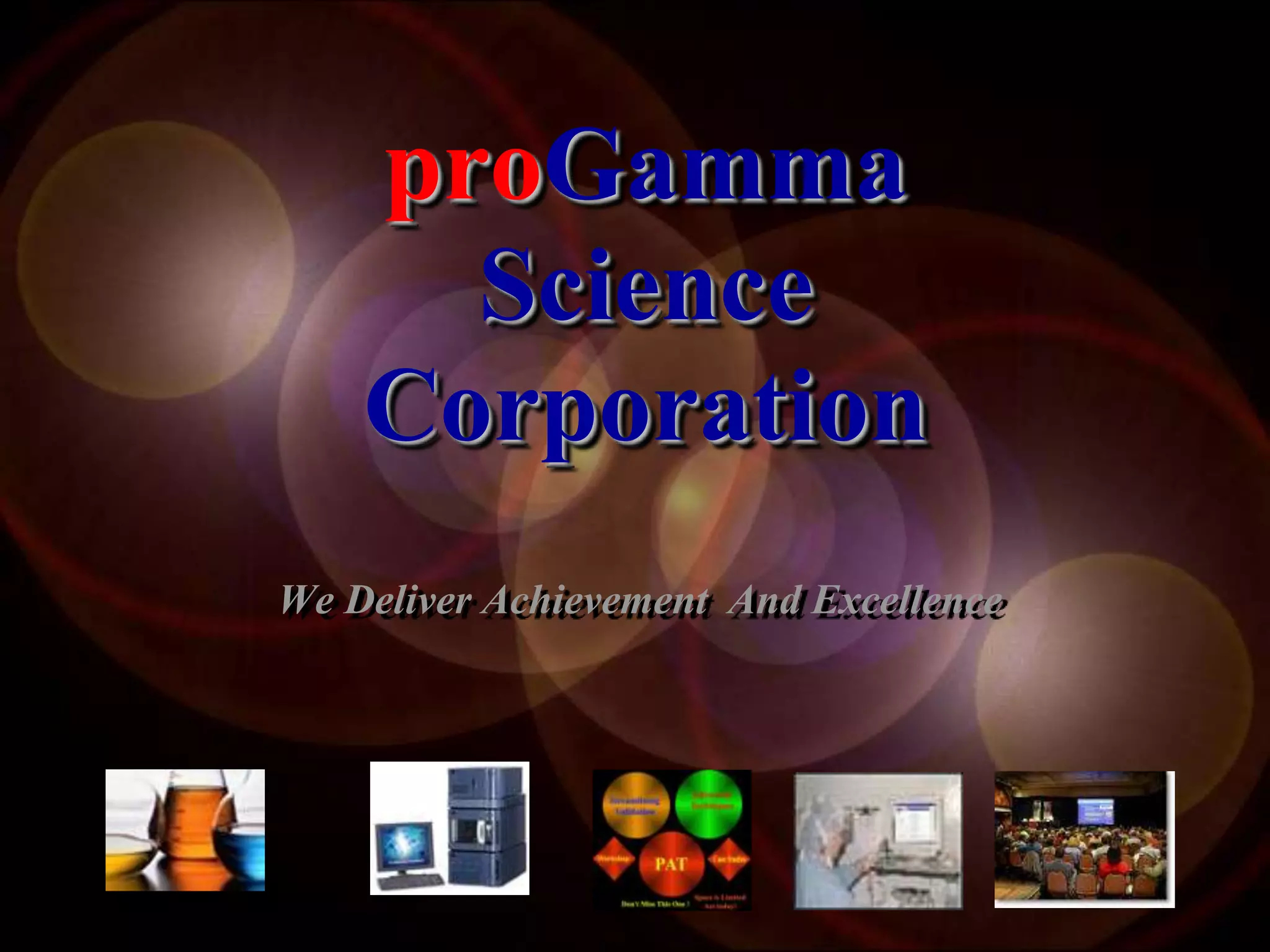 ProGammaScience Corporation is a consulting firm based in Montreal that has been providing quality assurance, regulatory affairs, and technical operations services to the pharmaceutical industry since 1985, including assistance with submissions, GMP compliance, analytical method validation, product development, and technical training. The company aims to deliver excellent client service and documentation support at the best possible cost through its team of qualified professionals. Some of ProGammaScience's clients include major pharmaceutical companies like Abbott, AstraZeneca, Merck, Novartis, and Pfizer.