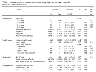 2. Key factors in these models include female age, duration of infertility, cause of infertility, ovarian reserve tests, and data from previous treatment cycles.