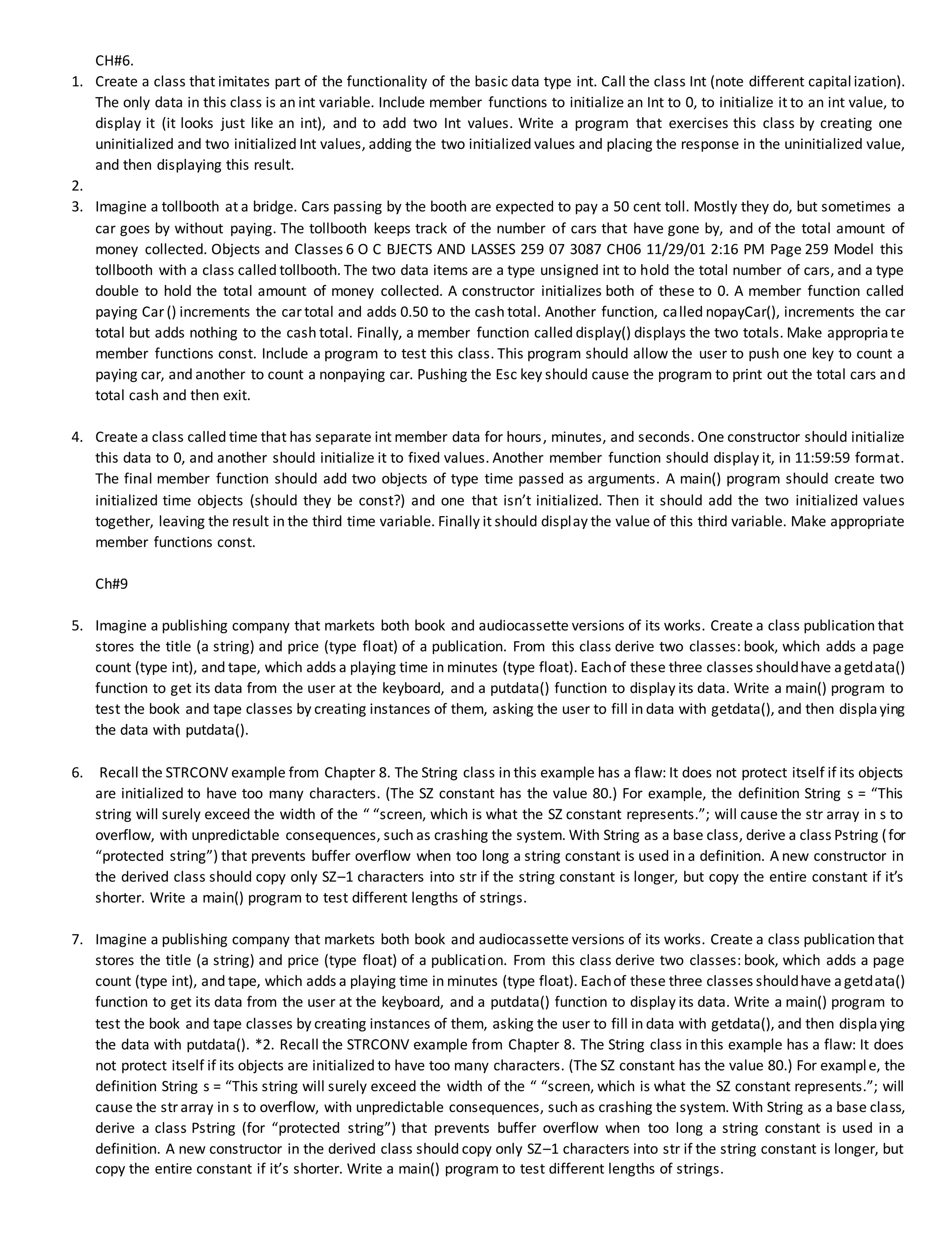 2. It also describes creating a Tollbooth class to model a tollbooth. The class contains data for the number of cars and amount of money collected. Member functions increment counts for paying and non-paying cars. The class displays the totals.