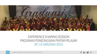 Program Perkongsian Pelajar Pintar 3P 6 Hamzah 2015 bertujuan untuk meningkatkan keyakinan dan akhlak anak-anak bagi menghadapi peperiksaan, serta mengukuhkan ukhwah antara ibu bapa, guru, dan pelajar. Pelbagai aktiviti telah diadakan termasuk sesi motivasi, kelas bimbingan mingguan, dan majlis penghargaan untuk pelajar dan guru. Sumber kewangan dan perbelanjaan program juga telah dirancang untuk menyokong pelaksanaan aktiviti-aktiviti tersebut.