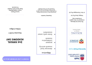 This document is the agenda for the 2nd Annual Academic Day at the Women's and Newborn Health unit. It will include presentations on a variety of topics related to women's health, pregnancy, childbirth, and newborn care. Presentations will cover local research studies, risk factors, clinical practices, and implications for improving health outcomes and services. The day-long event aims to showcase local research, promote collaboration, and foster development of early career researchers. It will include invited talks on informing policy with research and on pelvic floor implications.