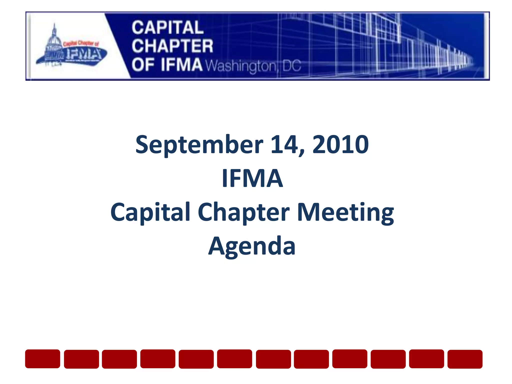 The document provides an agenda for the September 14, 2010 IFMA Capital Chapter meeting. It lists upcoming events in September including an advocacy day in Washington D.C., a speed interviewing event, and a partner happy hour. It also announces the IFMA World Workplace conference in Atlanta in late October. The document describes the various teams and committees within the Capital Chapter including communications, community service, membership services, education, special events, partnership, and the executive committee. It invites members to get involved with these groups.